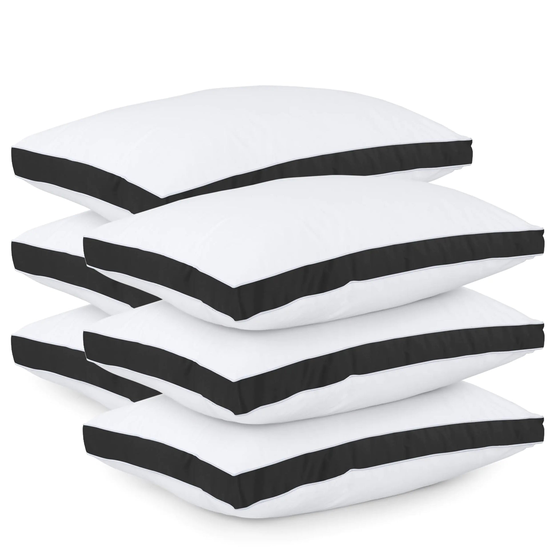 Upgrade your sleep experience with this set of 6 Utopia Bedding Gusseted Bed Pillows, crafted for hotel-quality comfort and long-lasting support. Each pillow features a sleek black gusset with white piping and double stitching — combining durability with a sophisticated, modern look.